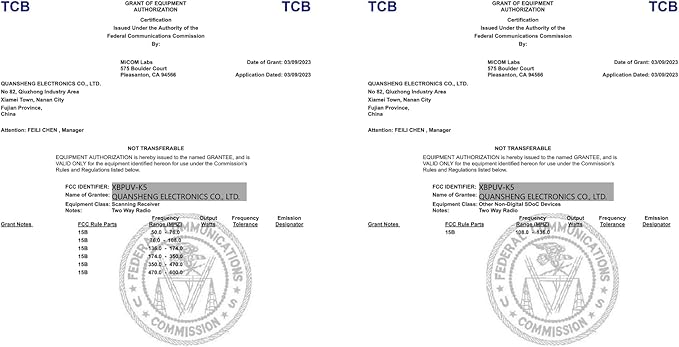 - 【Manufacturer】QUANSHENG Electronics co Ltd. 【FCC ID】XBPUV-K5