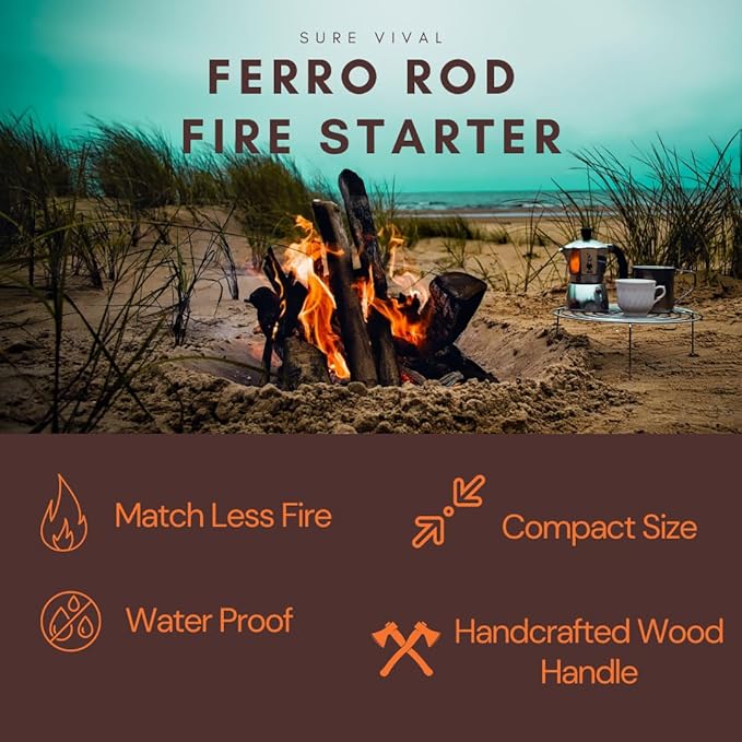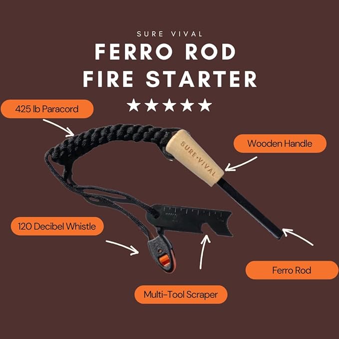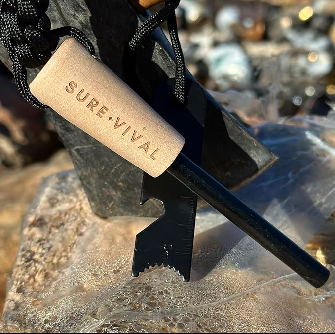 - VERSATILE FIRE STARTER: Our Ferro Rod Fire Starter with Multi Tool and Wooden Handle is the ultimate tool for igniting fires in any outdoor adventure or emergency situation.