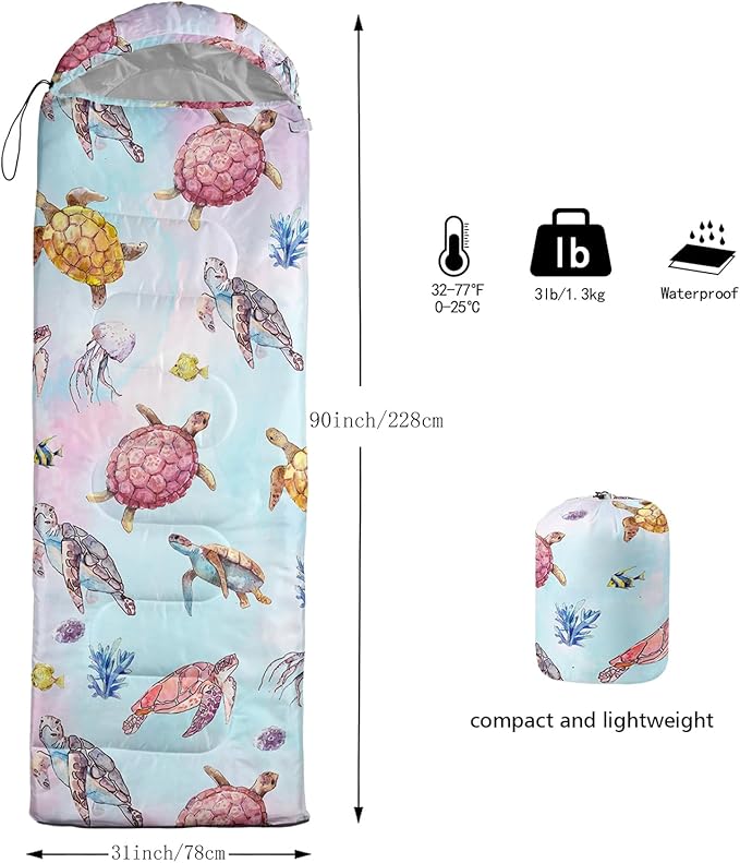 BSNTHO Turtle Camping Sleeping Bags,3 Season Warm & Cool Weather,Lightweight,Waterproof Sleeping Bags for Adults & Kids,Traveling,and Outdoors,Camping Gear Equipment,31x90inch