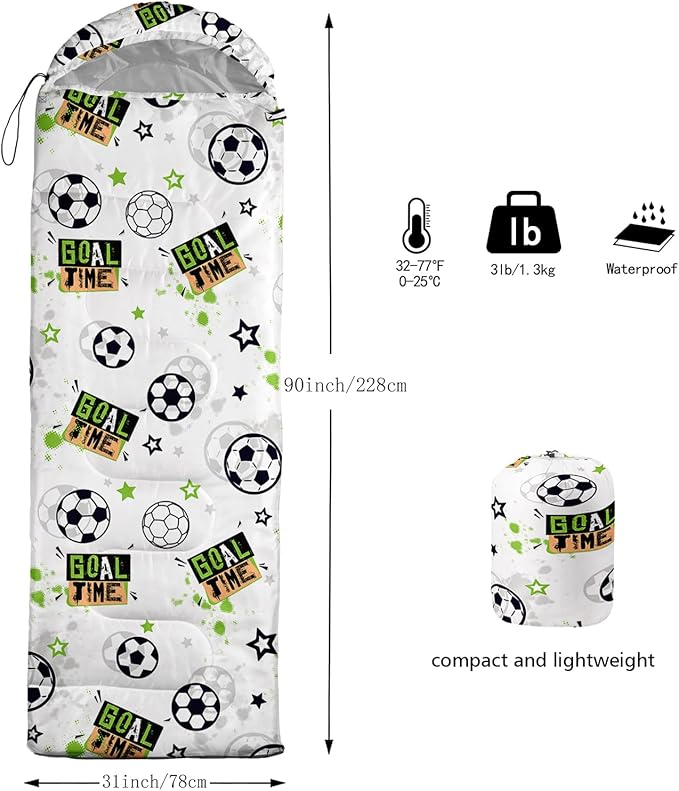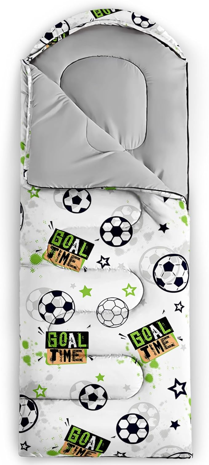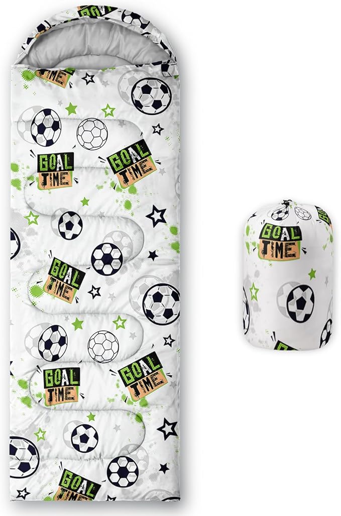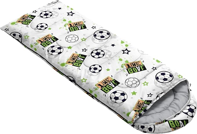 BSNTHO Soccer Boys Camping Sleeping Bags,3 Season Warm & Cool Weather,Lightweight,Waterproof Sleeping Bags for Adults & Kids,Traveling,and Outdoors,Camping Gear Equipment,31x90inch