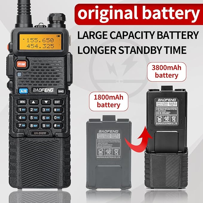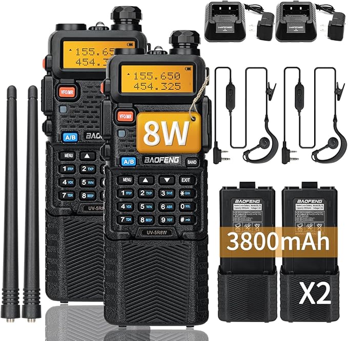 Baofeng UV-5R 8W Ham Radio Long Range Walkie Talkies for Adults Baofeng UV5R Two Way Radio with Earpiece 3800mAh Battery (2)