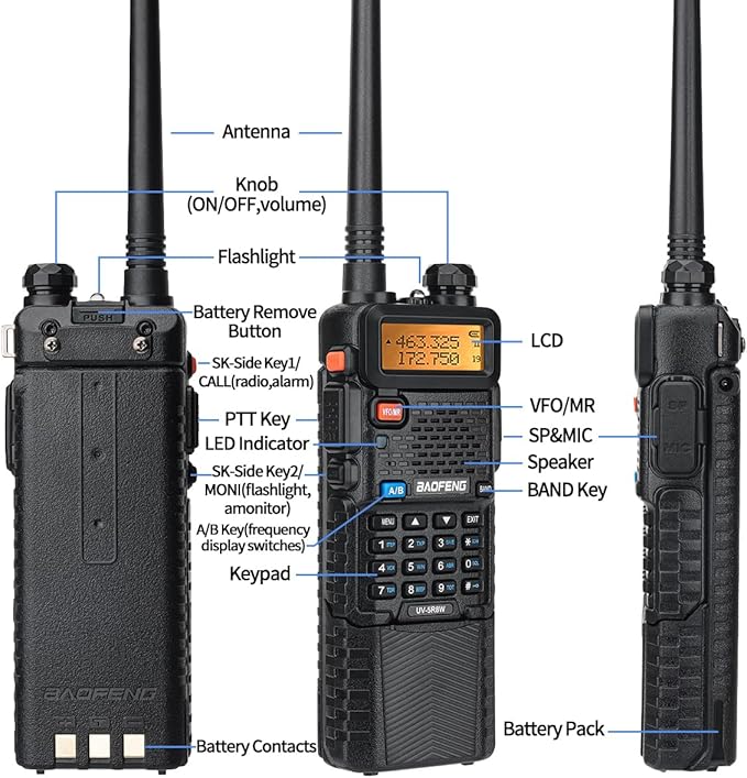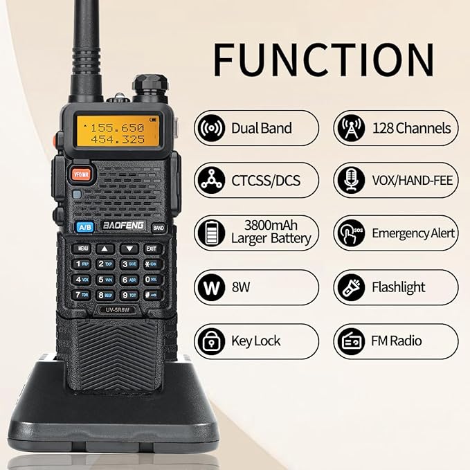 - ✅【Professional Two Way Radio】8W /5W /1W Tri-Power Switchable,50 CTCSS/105 DCS ensures the privacy of your calls and avoids interference on the same frequency.UHF VHF dual band frequency range covers most ham radios.FCC ID:2AJGM-UV5R