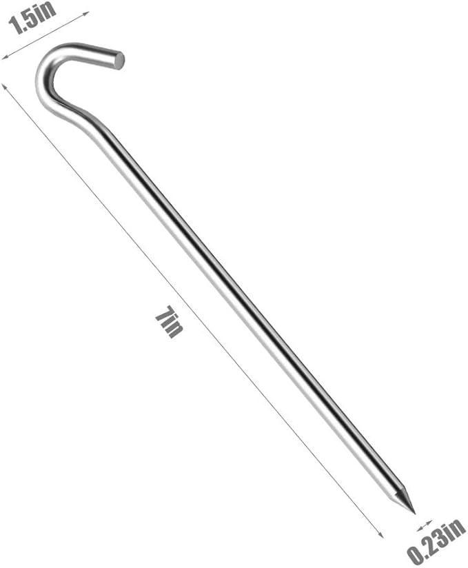 - 【Size】Tent pile length 7IN, width 2.5IN, weight 0.5OZ, and with hook design, can be better installed, firmly fixed your tent, so you do not feel any impact.