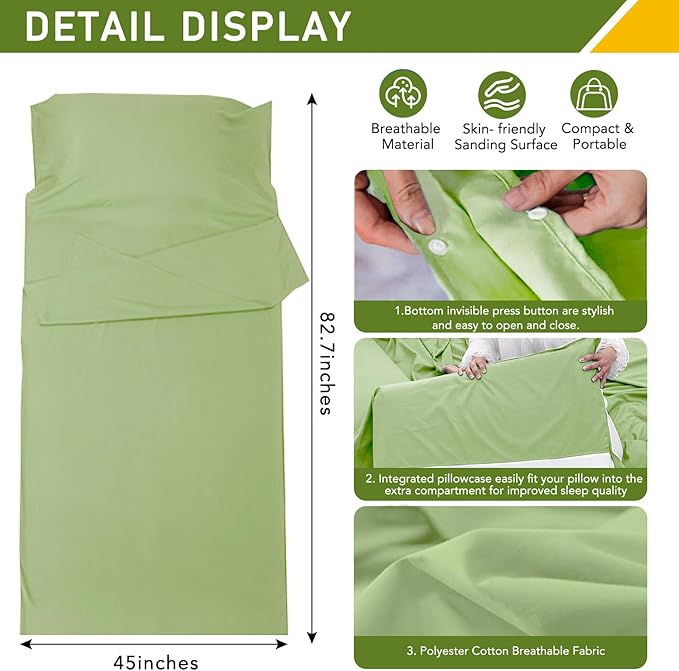 - Clean and hygienic: The sleeping bag liner can be used for sleeping bags to keep them dry and clean. The integrated pillowcase provides extra protection and comfort. This sleeping bag liner is lightweight and easy to clean as we can hand wash or machine wash it. Dries quickly in the tumble dryer, making it a top choice for travel linens.