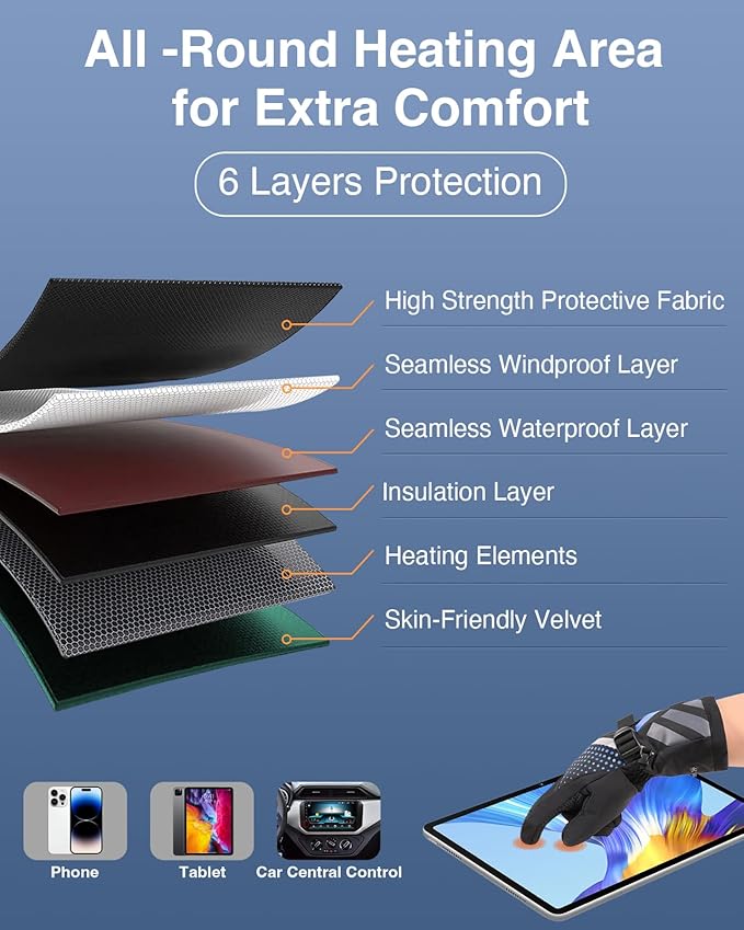 - Conquer Winter, Gear Up with Versatile Heated Gloves - Set out on a journey of winter wonder and let the cold be your companion, not your adversary! From snowy peaks to frosty trails, let our gloves be the reliable companion that keeps you warm, enabling you to revel in the beauty of the winter world.