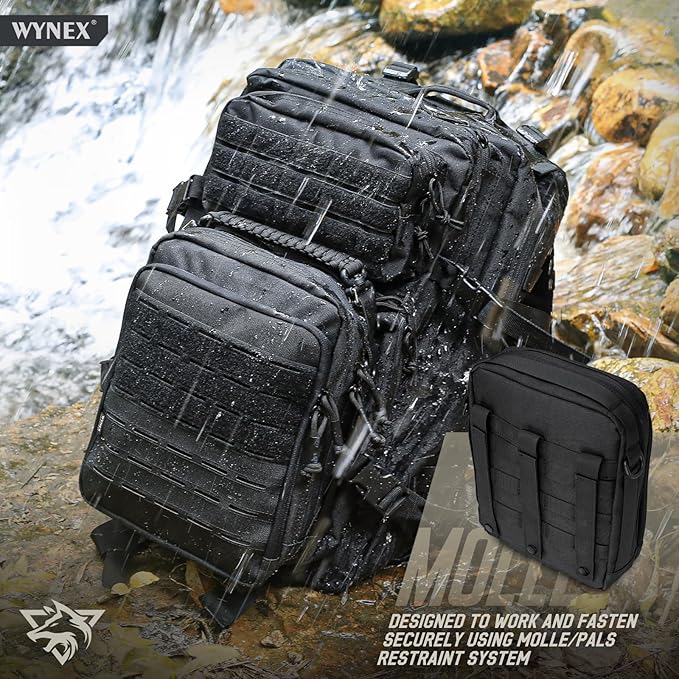 WYNEX Tactical Molle Admin Pouch, Utility EDC Pouch Organizer Modular Tool Pouch of Double Layer Design Medical EMT Attachment Bag Large Capacity with Elastic Webbing Insert Panel