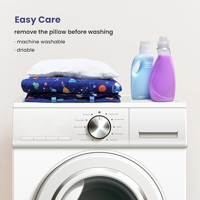 - Easy Care:Keeping your slumber bag with pillow and blanket clean is a breeze! We recomend you to remove the included pillow and toss the mat in the washing machine with cold water.