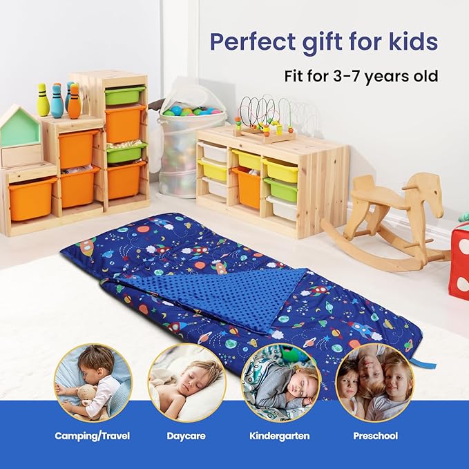 - Extra-Large and Thick: Our extra-large sleeping bag provides a thick and comfortable experience.Measuring 59 x 24 inches, this nap mat is perfect for kids of all ages and heights,providing more comfort and warmth.