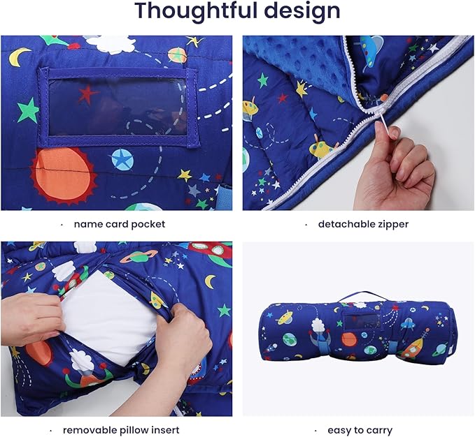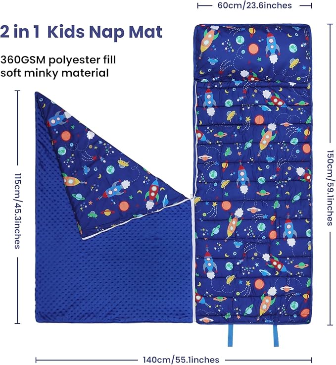 - 2-In-1 Detachable Design: Featuring a convinient zipper,the blanket is not only a reliable warm cover when used as a kids nap mat but also the detachable blanket can be used alone anywhere.