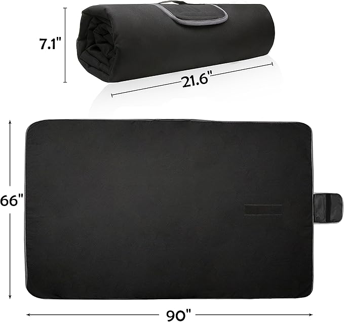 - PACKABLE & PORTABLE- It’s also easily foldable and packable, this compact waterproof throw blanket can be simply rolled up into a handled roll secured by a heavy-duty fastener, which is super easy to store.
