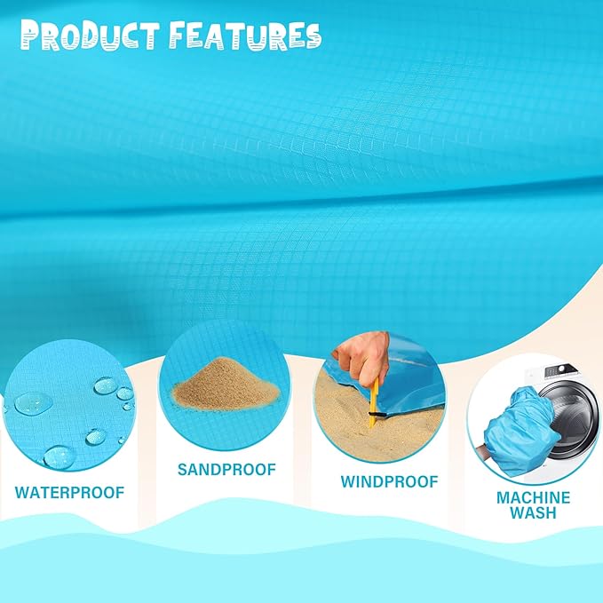 - 🌊BIG BEACH BLANKET:Durable and fast drying,can also be used as a canopy,sunshade,tent,toddler crawling mat,picnic mat,first aid mat,better professional fabric sewing without irritating the skin,providing you a good sense of use.