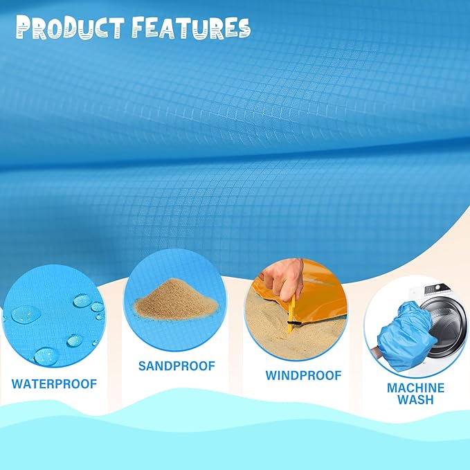 - 🌊BIG BEACH BLANKET:Durable and fast drying,can also be used as a canopy,sunshade,tent,toddler crawling mat,picnic mat,first aid mat,better professional fabric sewing without irritating the skin,providing you a good sense of use.