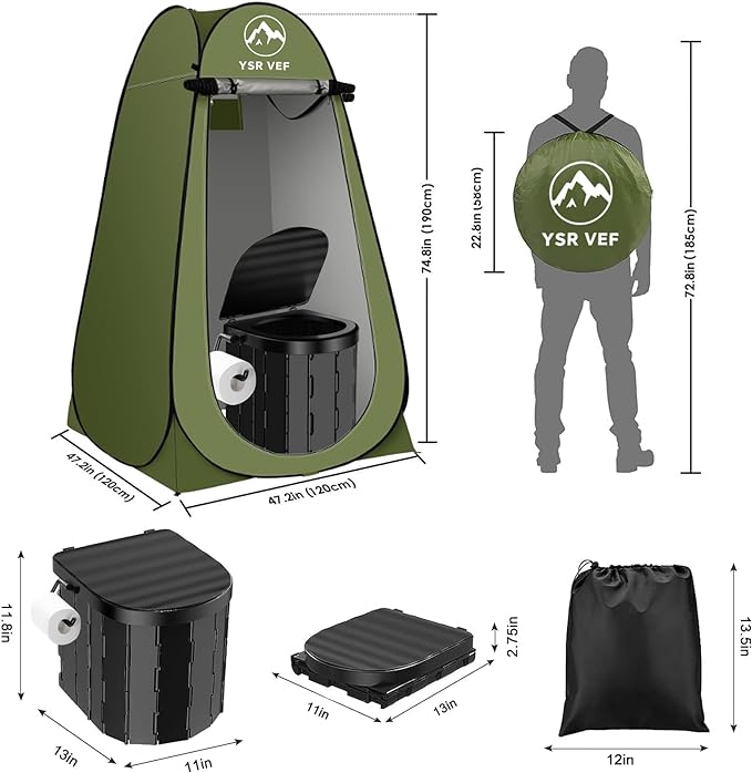 - 【Quality after-sales】It has Pop up Shower Tent×1, ortable Folding Toilet Seat×1, 12 Toilet bags, 12 pack Liquid Waste Gel, if you are dissatisfied with the product or damage within 3 months after purchase, you can contact us, we can provide you with after-sales service.