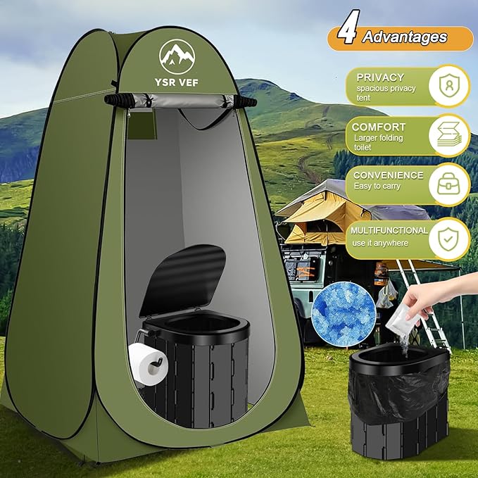 Portable Toilet Kit, Camping Toilet with Pop-Up Privacy Tent and Poo Gel Toilet Bags, Washable Portable Outdoor Showers Changing RoomsB0CBSTNTMQ
