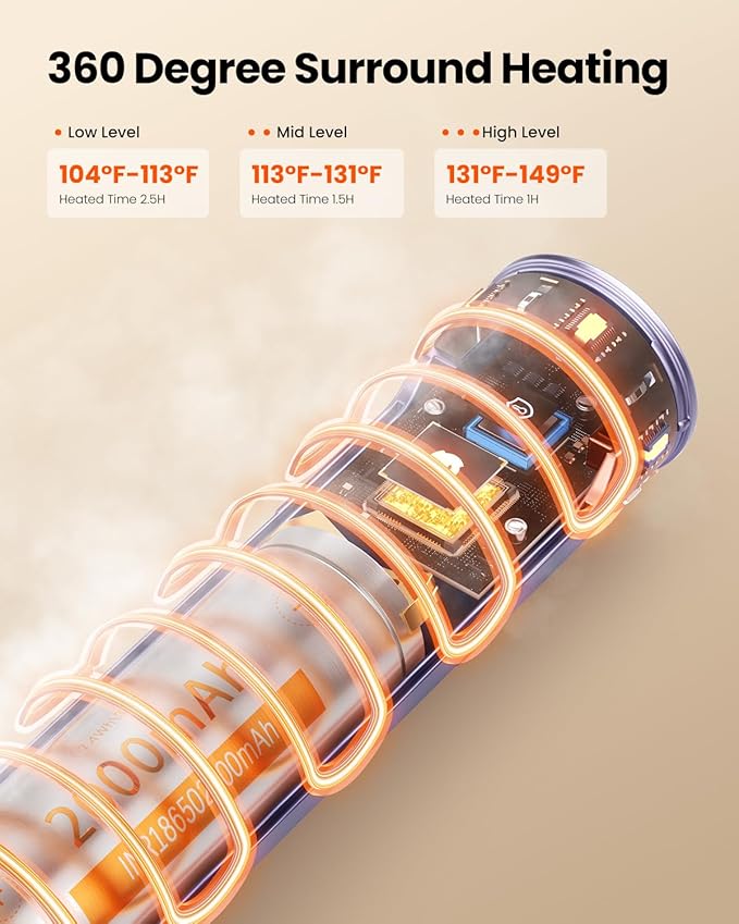 - 【Rapid and efficient heating】 This battery hand warmer has releasing warmth in just 3 seconds! 3 temperature levels to for your choice. Low level (40-45℃/104-113℉) Mid level (45-55℃ 113-131℉) and high level (55-65℃/131-149℉). The actual operating temperature may be slightly lower depending on the ambient temperature.