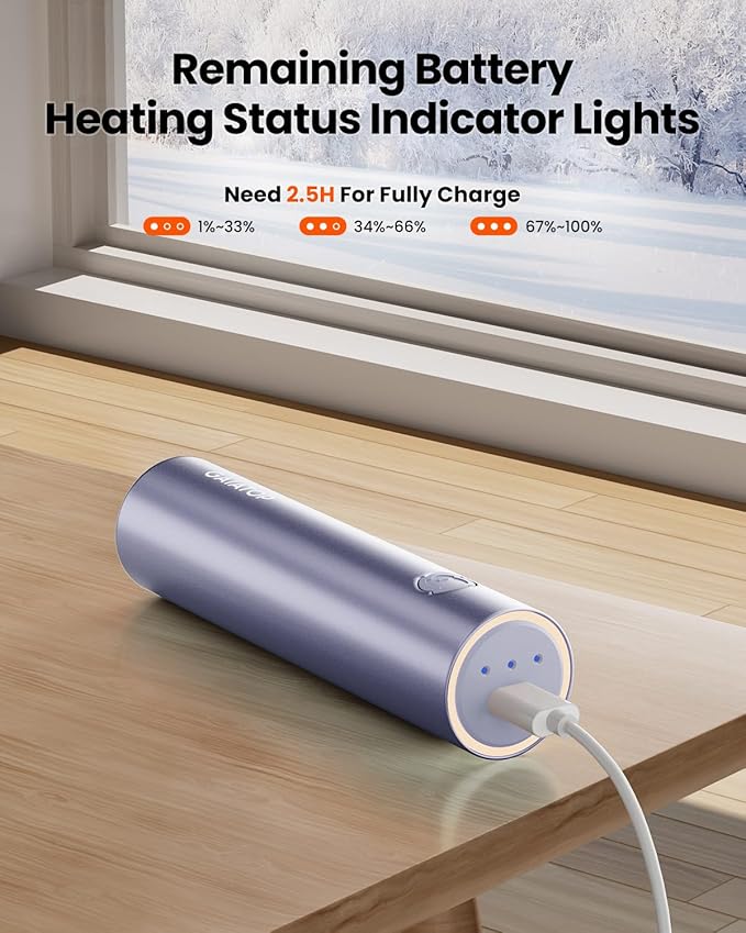- 【Built-in charging breathing light ring and indicator lights】The 3-level indicator lights keep you informed about the remaining battery and heating status. Our rechargeable hand warmers are your ideal choice,whether you're traveling, engaging in sports, hunting, golf, fishing, hiking, camping, skiing, or any other activity.