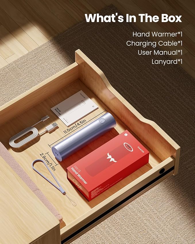 - 【Portable and convenient】 Gaiatop electric pocket heate hand warmers are compact, lightweight (H: 115mm, φ: 29mm, 64g), with the included lanyard, you can easily hang them up or carry them in your pocket. USB rechargeable hand warmer is a great gifts idea for birthday, anniversary, promotion celebration for your family members and lovers.