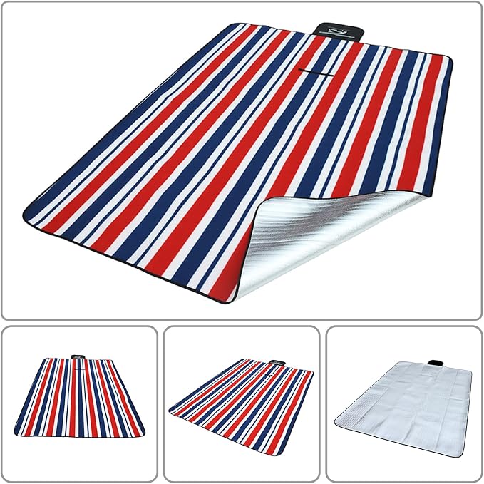 Wind Tour Family Outdoor Waterproof Durable Picnic Blankets with Carry Strap Foldable Sandproof Picnic Floor Mat for Kids Playground Camping Hiking Grass Travelling (1, Red & blue stripes-200*200cm)