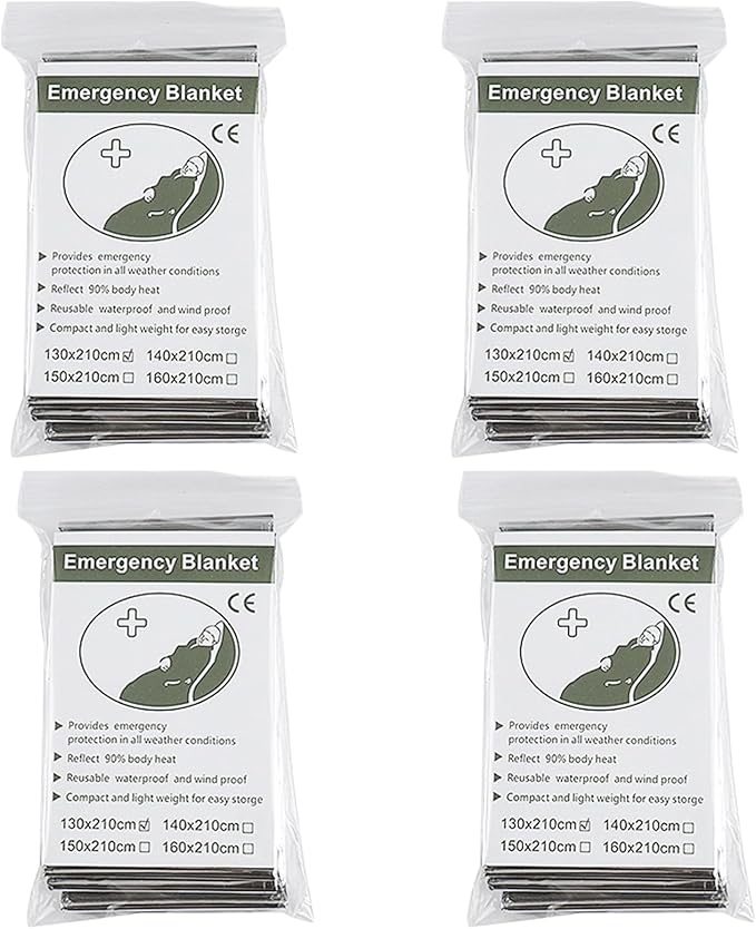 4Pack Outdoor Aluminum Foil Warming Blanket for Wilderness Survival, Camping, Easy Tenting - Rain and Sun Protection - Reflective Warming First Aid Aluminum Foil Blanket (Silver)