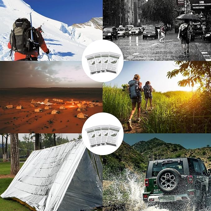 - 【Multi-purpose】 Wide range of uses (hiking, running, skiing, camping, car, adventure, tent footprints, backpack covers, ponchos, emergency signals, sun shades, emergency shelters, etc.)