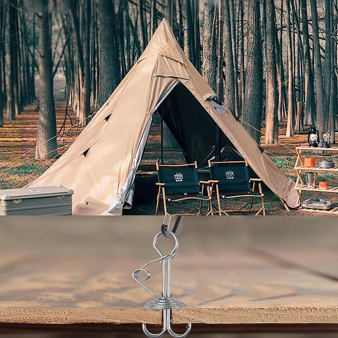 - [Easy Installation] D-shaped carabiner is attached, which is convenient for you to fix the tent on the deck nails. The installation method is very simple. Just insert it into the gap and rotate it to fix it. Binding with D-shaped carabiner and tent rope.