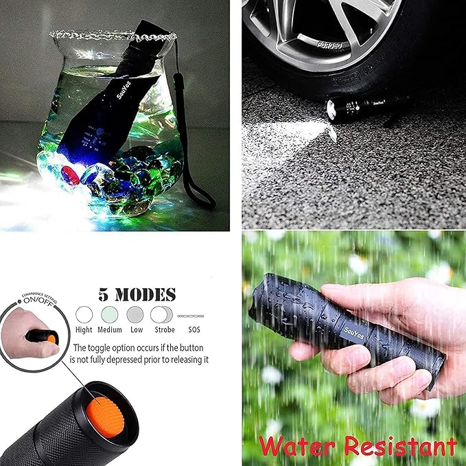 - 5 Lighting Modes: High/Middle/Low/Strobe/SOS. Gently press to change modes. Super bright up to 2000 lumens and 500 meters long distance