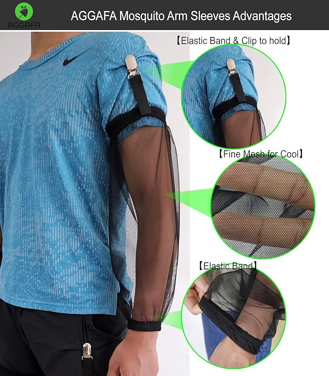 • Breathable & Light weight: Stay cool and comfortable during outdoor activities with AGGAFA Mosquito arm sleeves. from lightweight polyester with fine mesh holes, they provide excellent ventilation while helping to reduce the likelihood of contact with mosquitoes and bugs