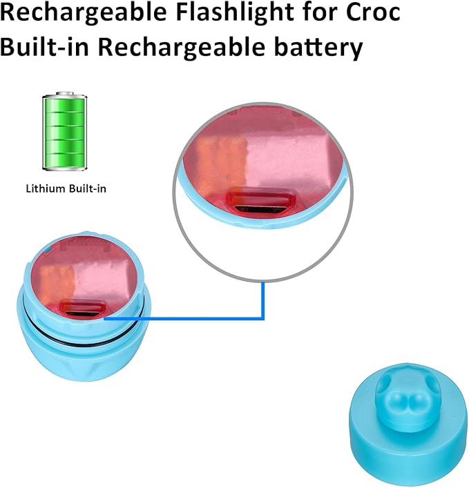 - 【Rechargeable Headlight for Croc Shoes】Upgraded rechargeable battery use environmentally friendly materials and are recyclable, capable of being recharged more than 1,500 times and providing over 13,000 hours of working time, can save you money on batteries.
