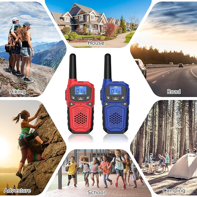 - 【Long range Transmission, Enhanced Features】-Walkie Talkie 2 Kit has 22 channels and 121 secrecy codes to choose from, letting you communicate with the same brand of walkie talkie on the same channel. Communicate longer distances in open spaces with virtually no obstructions using upgraded custom antennas, superior penetration and lossless transmission technology.