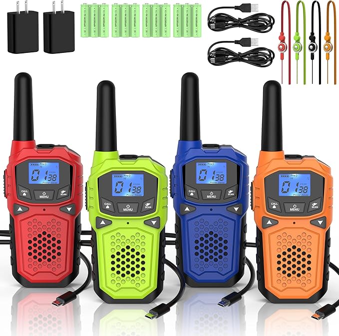 - Included Components : 1 x User's Manual, 1 x USB charger, 4 x Family Walkie Talkies, 4 x Adjustable lanyards, 3 x 4 1000 mAh Rechargeable AA batteries, 1x Exquisite Gift Box 1 x User's Manual, 1 x USB charger, 4 x Family Walkie Talkies, 4 x Adjustable lanyards, 3 x 4 1000 mAh Rechargeable AA batteries, 1x Exquisite Gift Box