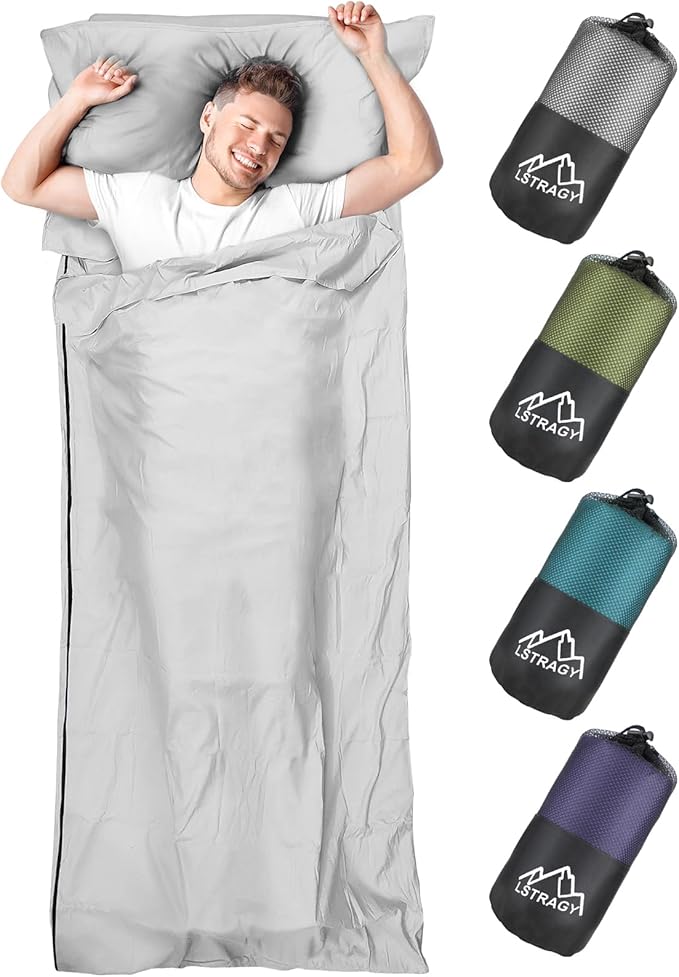 - VERSATILE UTILIZATION: LSTRAGY sleeping bag liner is hot weather essentials, catering to both outdoor enthusiasts and travelers. It functions not only as an integral part of your sleep system during outdoor expeditions but also as a reliable gear for added warmth and protection during hostel stays, long bus rides, and plane journeys.