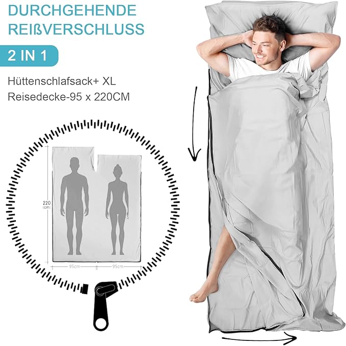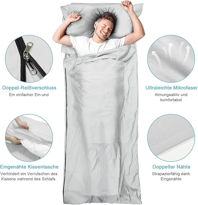- PERFECTLY SIZED - Immerse yourself in comfort with our thoughtfully designed liner. Measuring an impressive 86.6 inches (220cm) in length and 37.4 inches (95cm) in width, it offers ample room for even taller individuals without excess material that would make you uncomfortable. To top it off, we’ve included a pillow pocket for added convenience. When traveling, slide in your own pillow for a more hygienic and comfortable slumber.