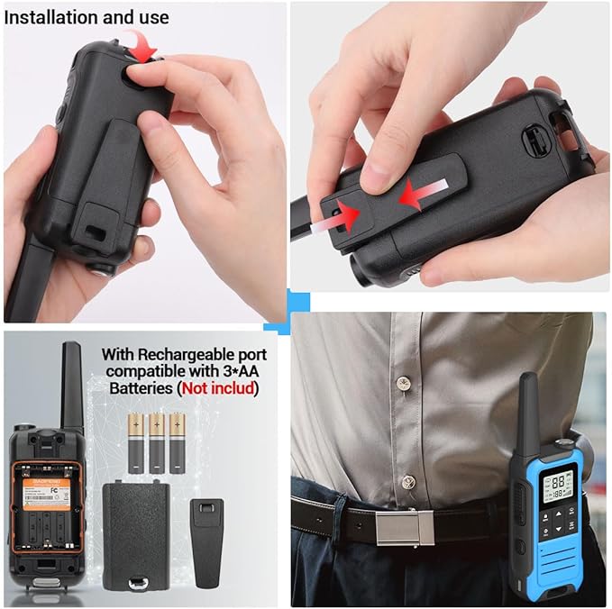 - 【What you get】Package contains (walkie talkie, belt clip, hand strap, ) X 2 and user manualX1.Easy to operate, suitable for novices, and provide technical guidance. All day customer service replies to ensure your purchase enjoyment.