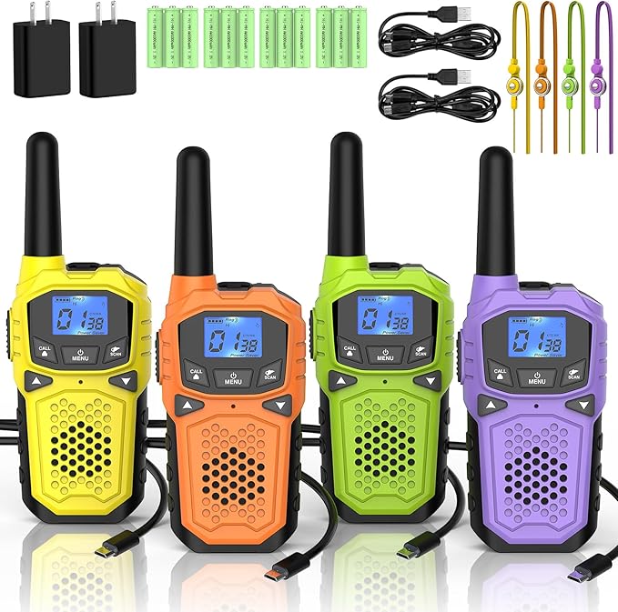 - Included Components : Walkie Talkies, Adjustable lanyards, Rechargeable AA batteries, Gift Box