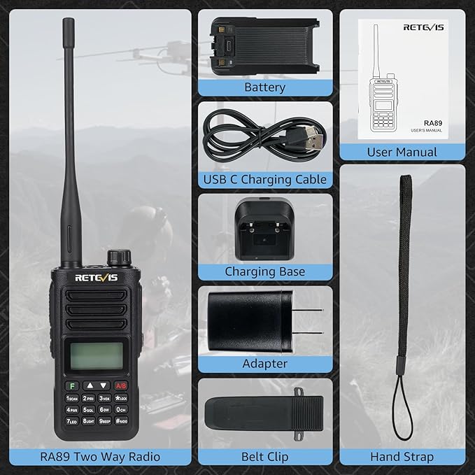 Retevis RA89 Ham Radio, 10W Dual Band Two Way Radio, 2500mAh USB-C Rechargeable Walkie Talkies, IP68 Waterproof Handheld Radio