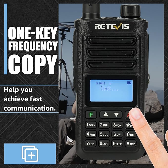 - Easy to pair handheld transceiver; in a certain range; long press the “A/B” key to seek signals and CTCSS/DCS; when other 2 way radios transport signal; RA89 will receive and display on the screen