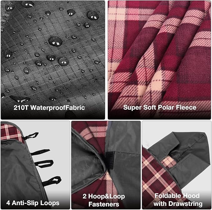 - ✅ 𝗦𝗧𝗔𝗗𝗜𝗨𝗠 𝗕𝗟𝗔𝗡𝗞𝗘𝗧 𝗪𝗜𝗧𝗛 𝗨𝗡𝗜𝗤𝗨𝗘 𝗛𝗢𝗢𝗗𝗘𝗗 𝗗𝗘𝗦𝗜𝗚𝗡:The DUKUSEEK outdoor waterproof stadium blanket for cold weather has an adjustable hood, which can be easily unfolded and converted into a poncho and cloak in rainy days. And it comes with a stuff sack for easy carrying and storage.