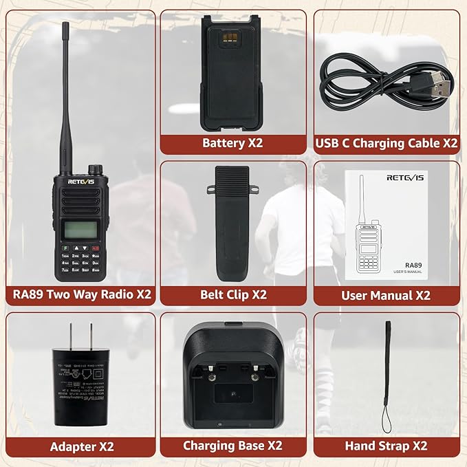 Retevis RA89 Ham Radio Handheld, Dual Band Two Way Radio, Rechargeable Portable Radio with One Key Frequency Match, 2500mAh, IP68 Waterproof, Long Range Walkie Talkies for Emergency Service(2 Pack)