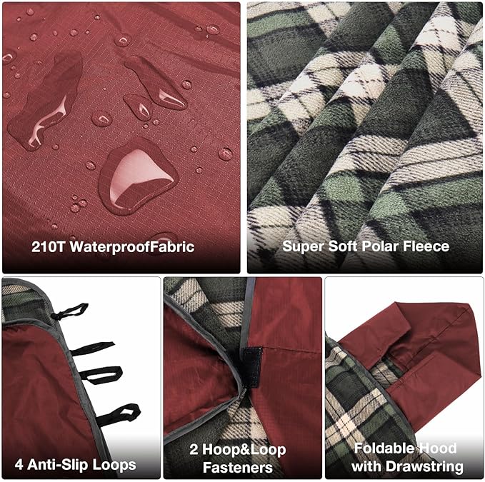 - ✅ 𝗘𝗫𝗧𝗥𝗔 𝗟𝗔𝗥𝗚𝗘& 𝗨𝗟𝗧𝗥𝗔-𝗟𝗜𝗚𝗛𝗧:This large outdoor camping blanket measures 79 x 59 inches (equivalent to a Queen Size Mattress) is large enough to wrap up to 2 adult. The large waterproof outdoor blanket is specially designed with a hook&loop fastener, so that you can wear it on your body to free your hands.