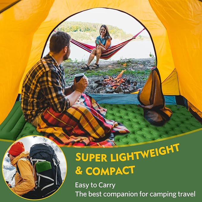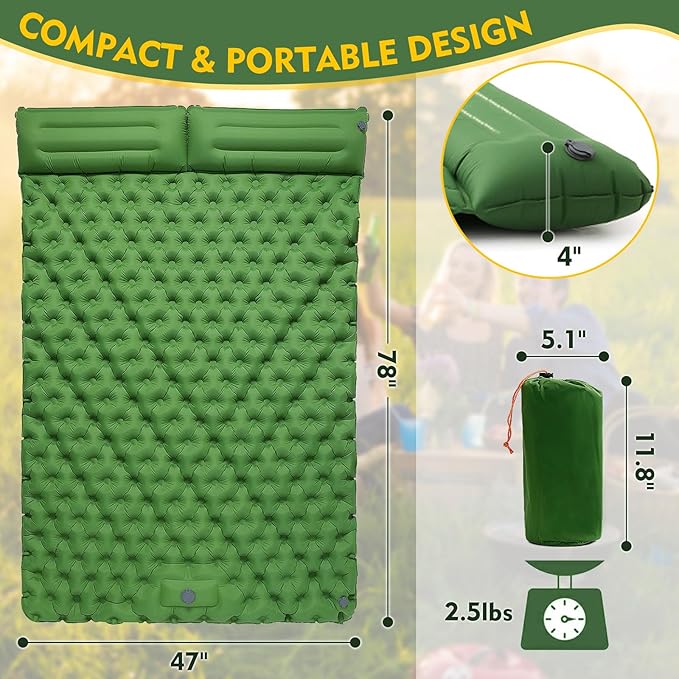 - ⛺【EASY STORAGE & PORTABLE CAMPING MAT】This camping mattress can be folded into a portable size 11.8"X5.1"X3.9'', weight 2lbs super light weight compact for carry with other camping gear. The inflatable sleeping pad for camping can be quickly inflated and deflated, making it convenient for use during camping, hiking, tent, picnic or other outdoor activities. NOTE: If you have any questions, please feel free to contact us and we are always at your service!