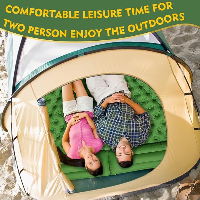 - ⛺【EXTRA THICK & WIDE 2 PERSON CAMPING MAT】: This is a lengthened, widened, and thickened inflating camping mat. The dimensions after inflation is 78"L x 47"W x 4"T; The sleeping pad for camping is extra thickness and big enough for 2 person. the thickness allows your body to keep off the hard ground. camping mattress providing better support whether lying flat or on your side for a good night's sleep during camping.