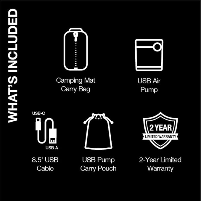 - Special Feature : QuickFill USB Air Pump, Puncture-Resistant Laminate, Full Size, 600lb Weight Capacity, Fiber-Tech