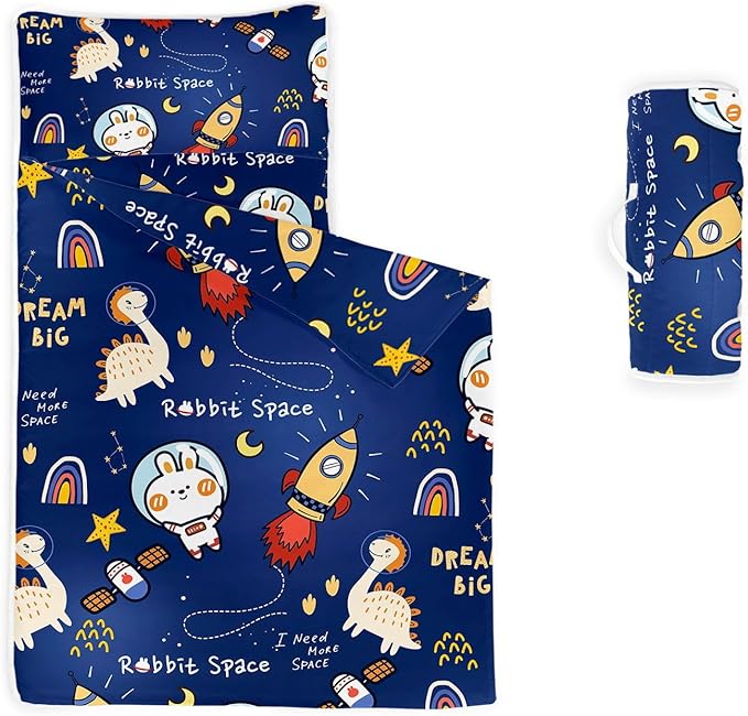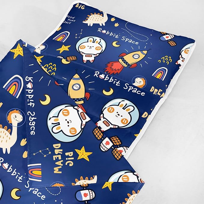 Space Nap Mat - Space Ship Galaxy Sleeping Bag with Removable Pillow - Daycare and Sleepovers Preschool Kindergarten Bedding Set for Kids Toddler Boys Girls