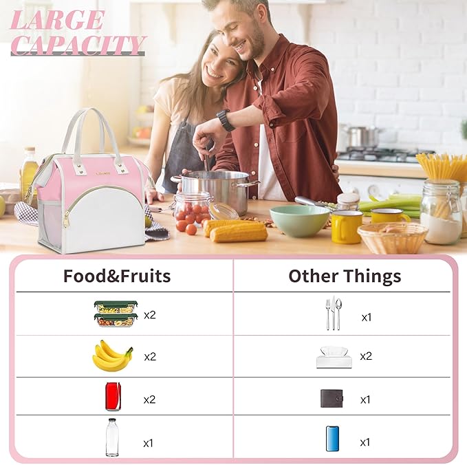 - 【Fashionable Lunch Bag】The uniquely designed lunch bag women, exquisite appearance and wrinkle-resistant shape make you say goodbye to the simple bag on the way to work and replace it with this practical and fashionable insulated lunch bag suitable for your elegant style. It can make your charm get the greatest praise! The fashionable style design makes the lunch bag is ideal to be used for men and women.