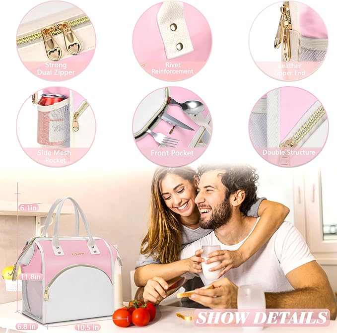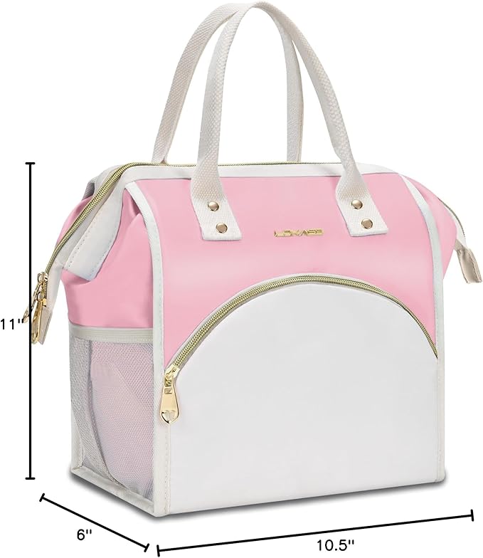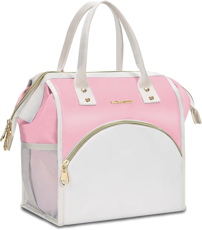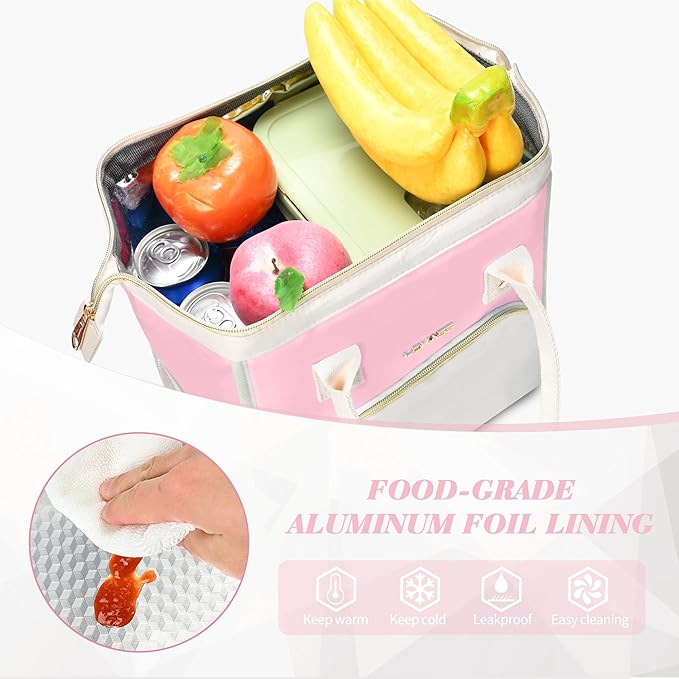 LOKASS Lunch Bag Women Insulated Lunch Box, Wide-Open Lunch Tote Bag Leak-proof Cooler Bag for Work Picnic-(Light Pink)