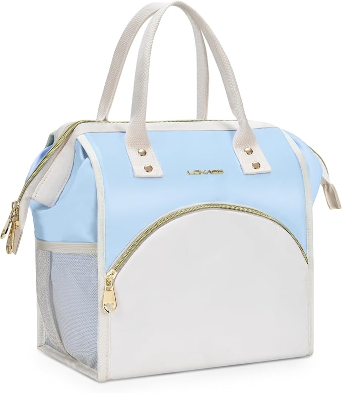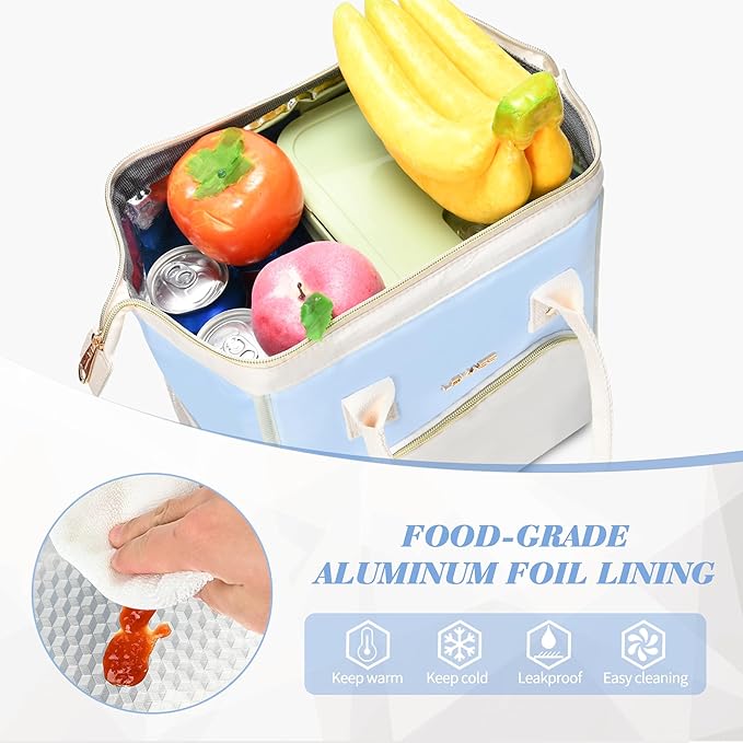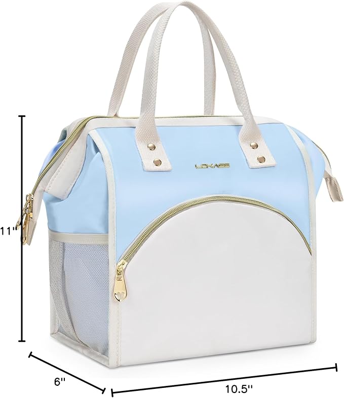 LOKASS Lunch Bag Women Insulated Lunch Box, Wide-Open Lunch Tote Bag Leak-proof Cooler Bag for Work Picnic-(Sky Blue)