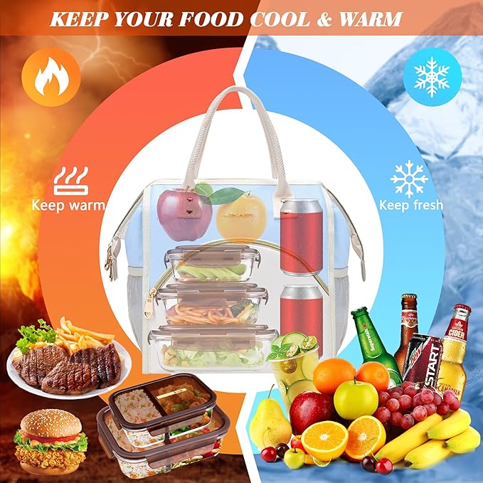 - 【Upgrade Aluminum Film】 Unlike others, our lunch bag women is made of aluminum film instead of EVA lining. The high-density three-layer fabric is lined with high-quality aluminum film material that can withstand high temperature and is not easy to wrinkle. High-quality aluminum film can keep food cool, warm and fresh for a long time. If you are looking for a lunch box that can withstand high temperature, it will impress you!