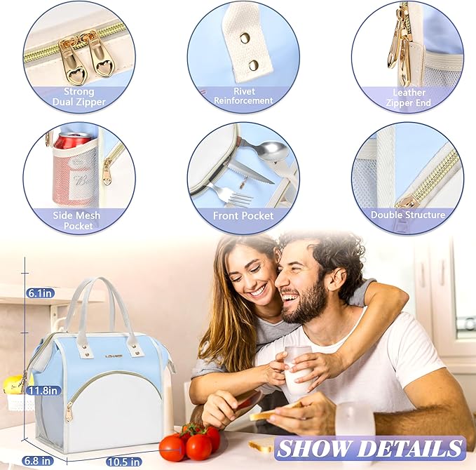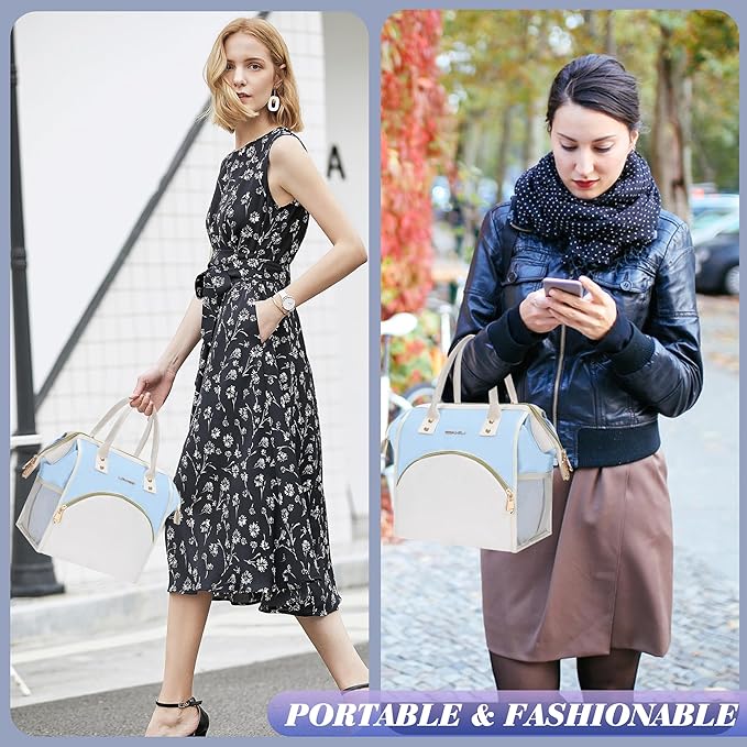 - 【Fashionable Lunch Bag】The uniquely designed lunch bag women, exquisite appearance and wrinkle-resistant shape make you say goodbye to the simple bag on the way to work and replace it with this practical and fashionable insulated lunch bag suitable for your elegant style. It can make your charm get the greatest praise! The fashionable style design makes the lunch bag is ideal to be used for men and women.