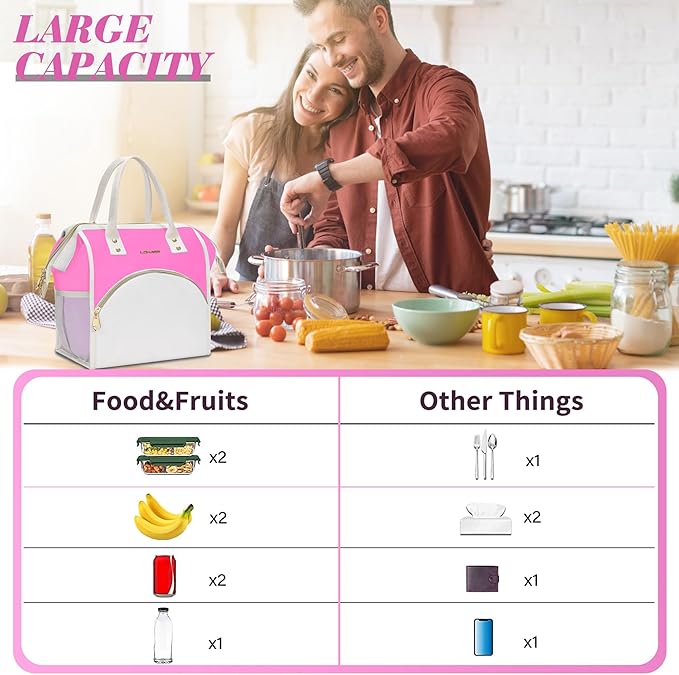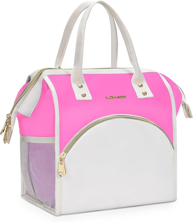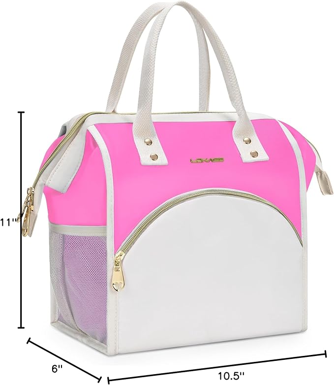 LOKASS Lunch Bag Women Insulated Lunch Box, Wide-Open Lunch Tote Bag Leak-proof Cooler Bag for Work Picnic-(Neon Pink)