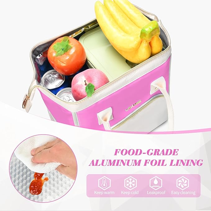 - 【Upgrade Aluminum Film】 Unlike others, our lunch bag women is made of aluminum film instead of EVA lining. The high-density three-layer fabric is lined with high-quality aluminum film material that can withstand high temperature and is not easy to wrinkle. High-quality aluminum film can keep food cool, warm and fresh for a long time. If you are looking for a lunch box that can withstand high temperature, it will impress you!